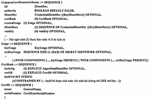 Đối tượng thông tin mã hóa cung cấp thông tin về một chứng chỉ.