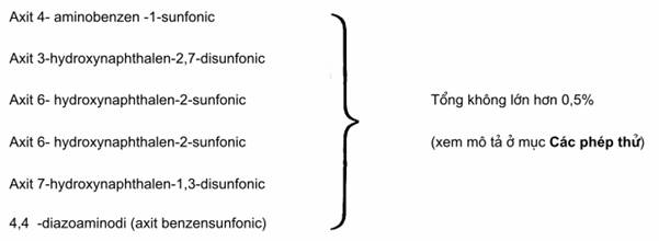 Các chất màu phụ Không lớn hơn 5% (Xem mô tả ở mục Các phép thử)