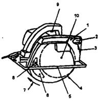 3.108. Máy cưa có tấm chắn bảo vệ kiểu cụp vào (saw with inner pendulum guard)