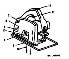 Máy cưa chỉ có tấm chắn bảo vệ phía trên mà lưỡi cưa sẽ thụt trong đó khi không sử dụng (xem Hình 104).