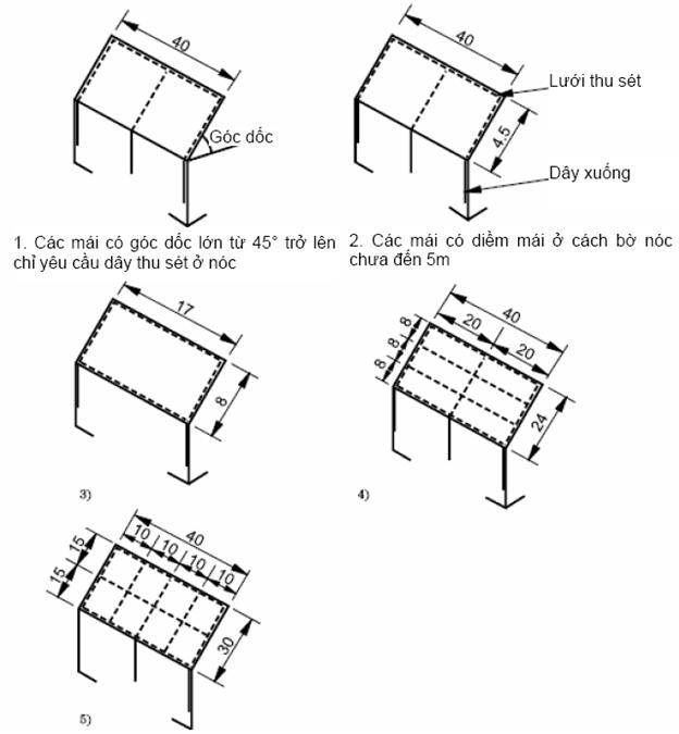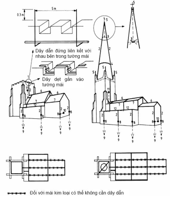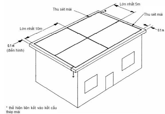 GHI CHÚ: Các số liệu trong bảng này là hợp lý khi mái nhà là một phần của hệ thống chống sét. Tuy nhiên vẫn có nguy cơ tấm kim loại bị đánh thủng đối với các cú sét đánh thẳng.